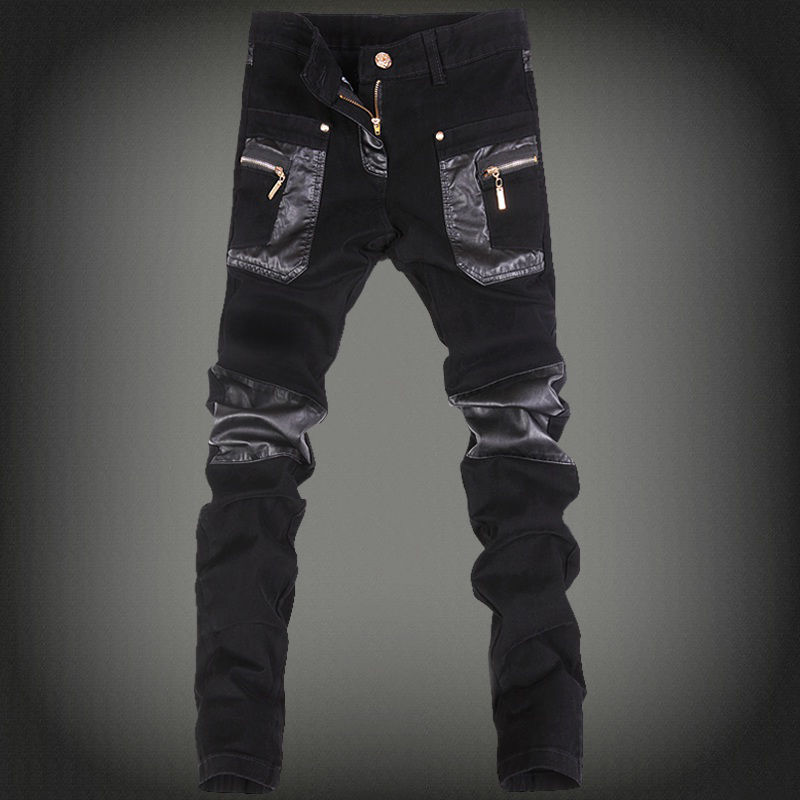 秋季無彈個性修身直筒拼接韓版牛仔褲